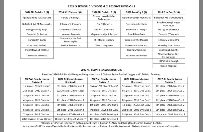 THE new league structure for the upcoming GAA season in Fermanagh has been agreed, following a meeting of County...