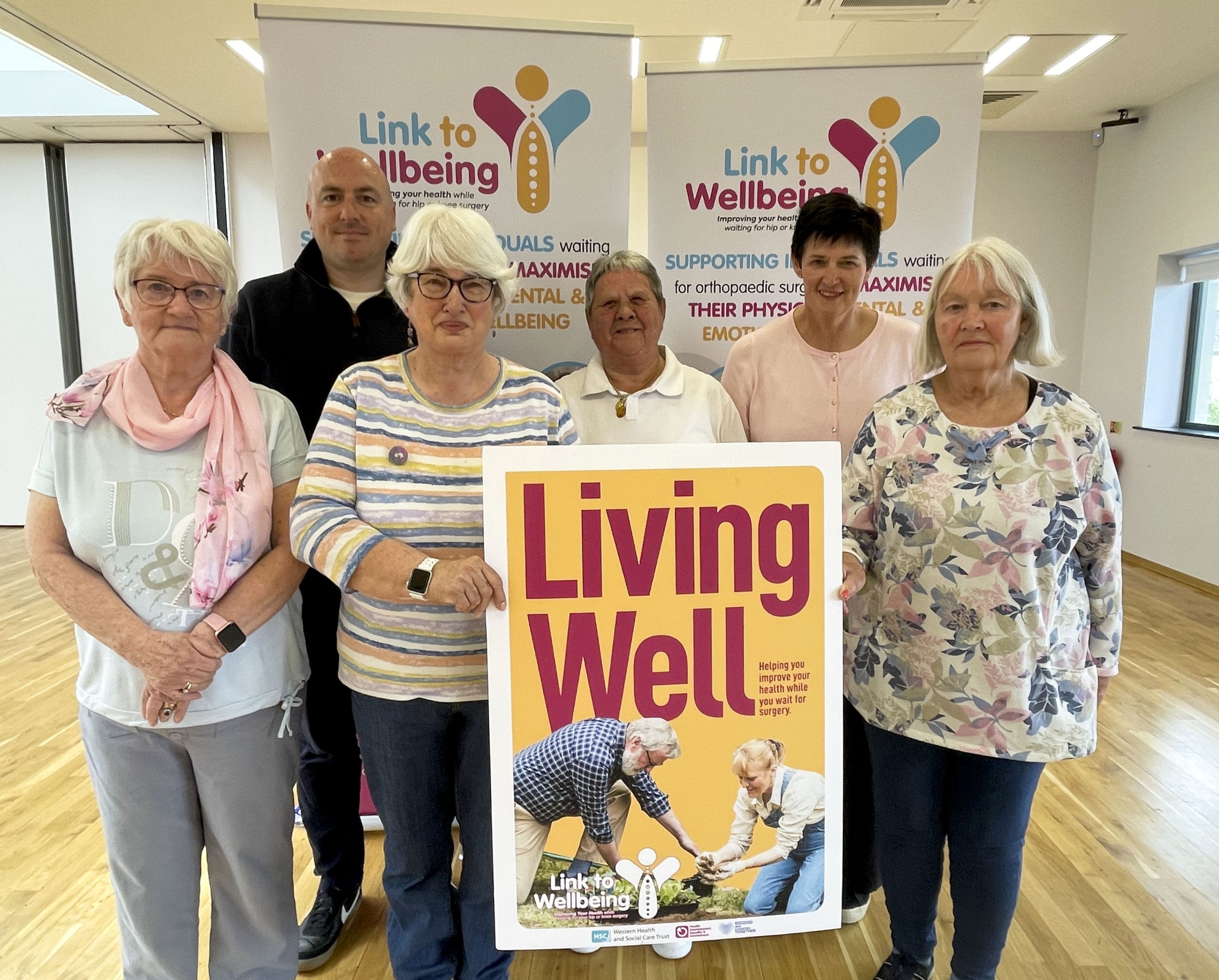 Link to Wellbeing is delivered in community locations across the Western Trust area for patients waiting on hip or knee surgery. It is the first of its kind in Northern Ireland for patients awaiting orthopaedic surgery. The eight week programme focusses on movement and mobility; nutrition and healthy eating; pain and condition management and mental and emotional wellbeing.
