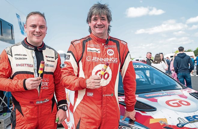 Ballinamallard’ Karl Fallis and Lisa McBarron came home 30th overall and third in class four in their Hinda Civic, while Ben Fallis, who had Louise McBarron in the passenger seat, was 32nd overall in his Nissan Micra Kitcar and first in class three, with Lisbellaw’s William Graham and co-driver Jonathan McAleer second in the same class.