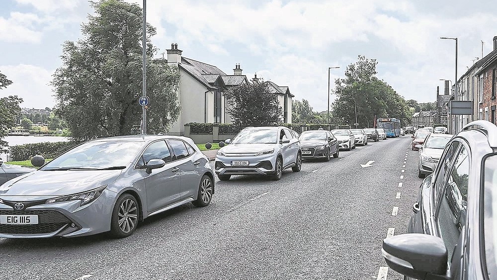 Traffic Hold Up - Cars queued back up to the Sligo Road from Henry Street in Enniskillen