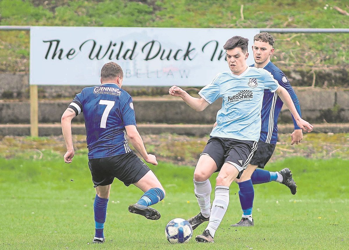 Augher started brightly with early set-pieces, but Lisbellaw carved out the first big chance on five minutes — Woods heading Craig Johnston’s back-post ball down for Moutray, only for Gary Trotter to clear off the line.