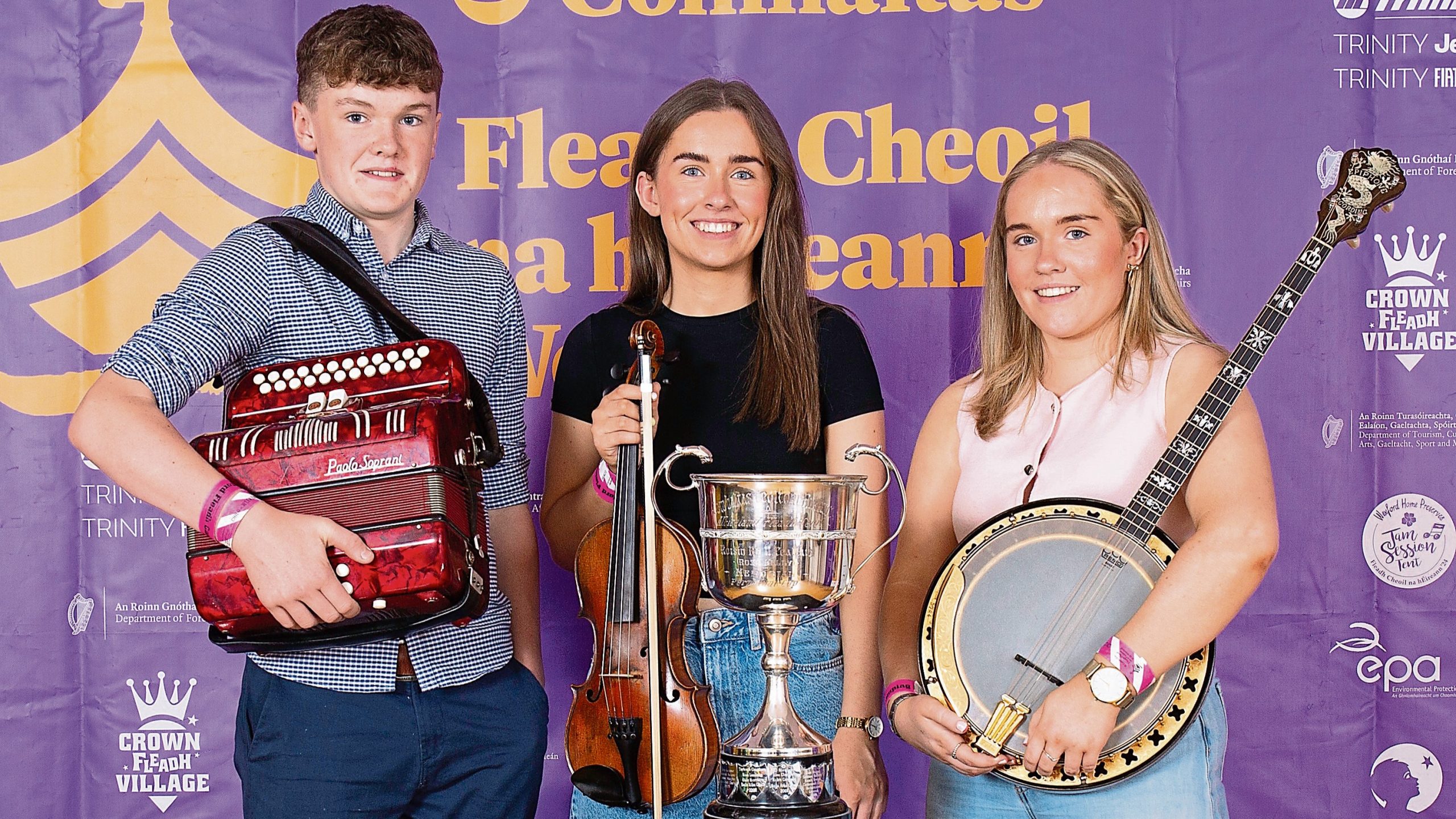 Derrygonnelly musicians Naoise Harbinson, Aoibh Love and Emily Creevy placed first in the 15-18 Grupaí Ceoil, in poignant scenes for the Irish traditional music group in Wexford.