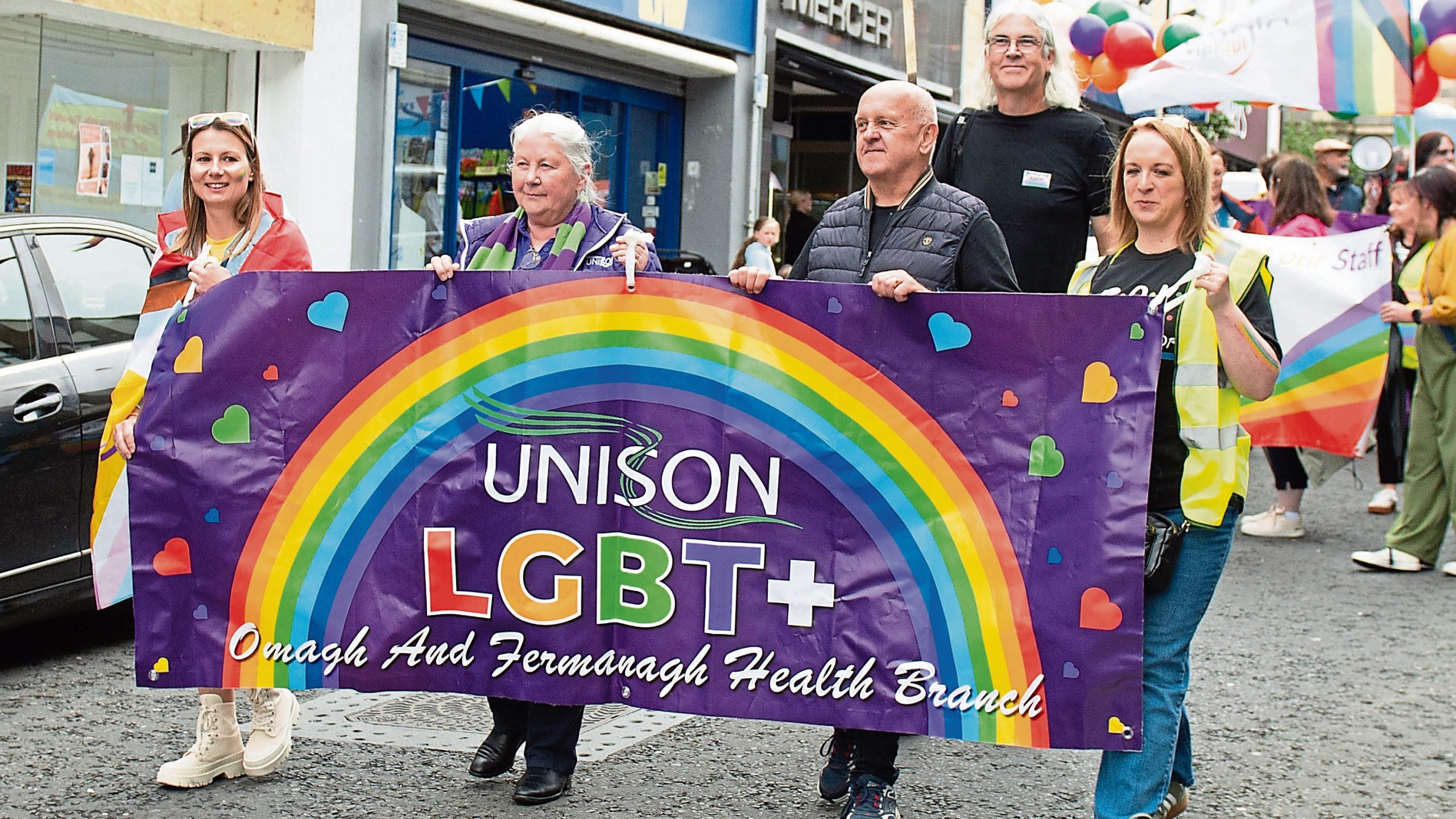 Local charities, support groups, drag queens, and Fermanagh Pride representatives marched proudly through the town. The colourful parade began at the FIND Centre and made its way through the streets to Enniskillen Castle.