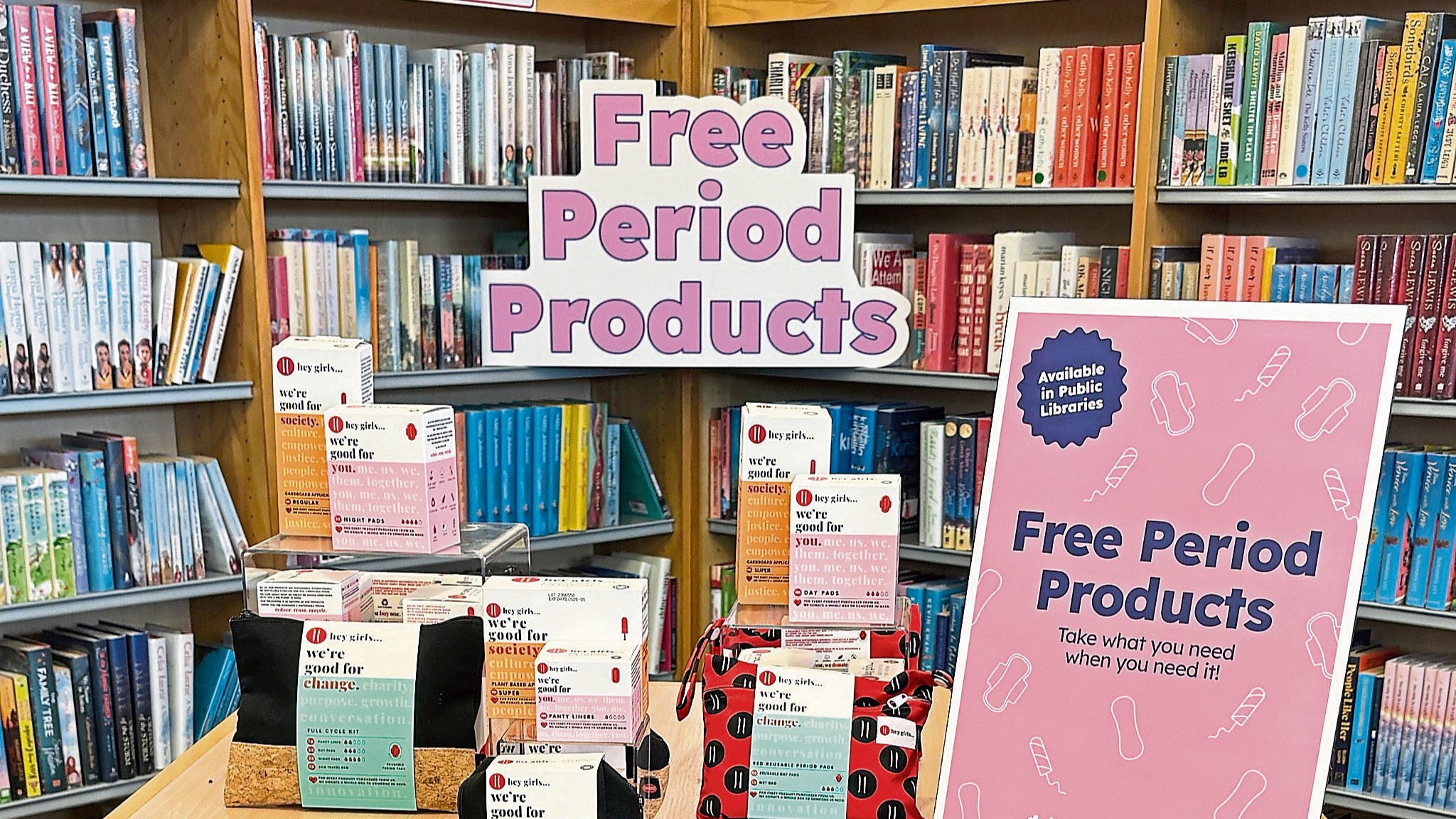 “A range of items, including pads, tampons and liners, is available in local libraries and can be picked up easily and discreetly by anyone who needs them, including those collecting for others.